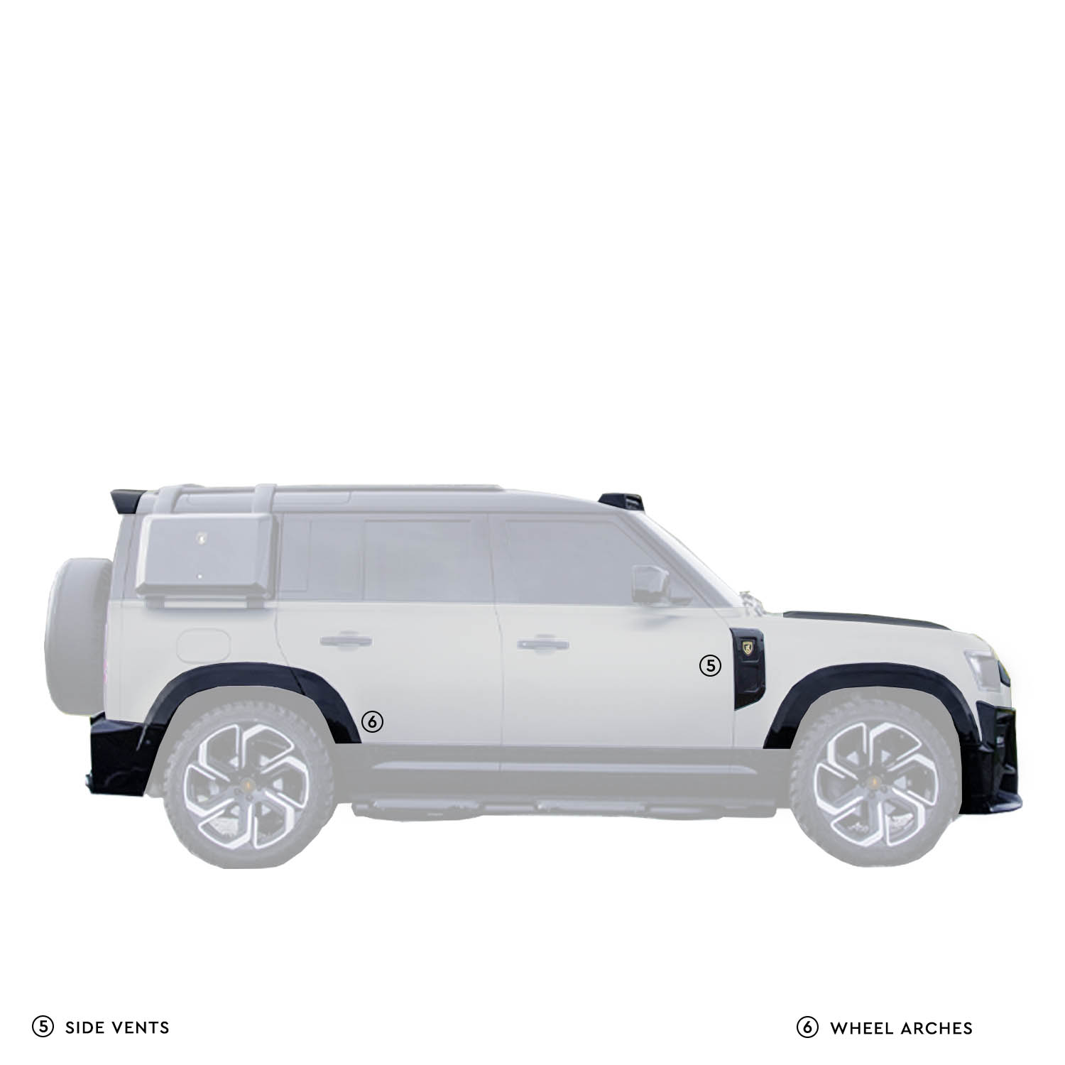 FALCON seamlessly blends the Defender’s heritage and legacy with a contemporary flair. Its sharp lines and aerodynamic design impart a unique distinction and commanding presence on the road, taking the iconic Defender beyond the horizon.
